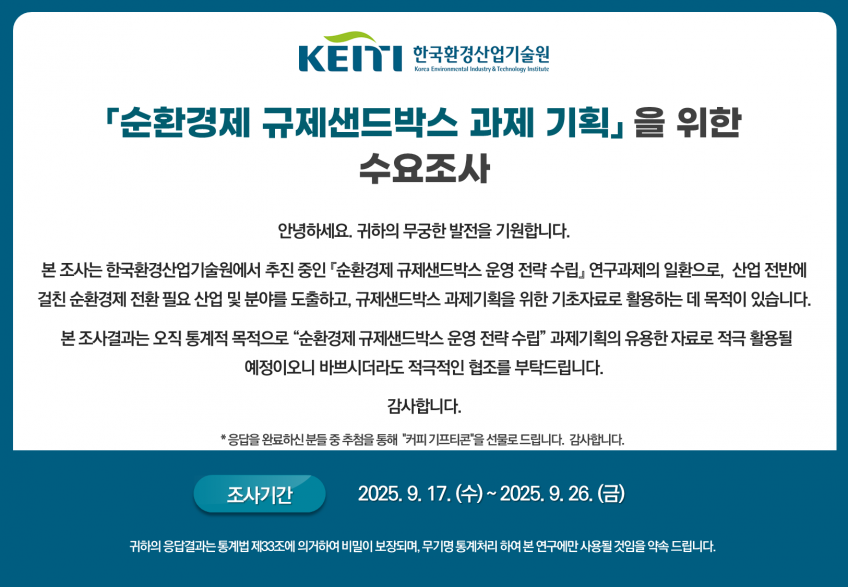 「순환경제 규제샌드박스 과제 기획」을 위한 수요조사 참여 요청